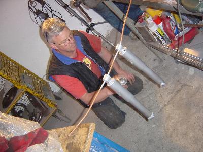 ... Eric baut hier die Kotflügel! Das Trike wird schließlich für einen Pfälzer !!!!! Da brauchen wir anständige Ecken an der Kiste! |