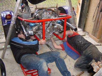Mittlerweile ist aber auch schon die Karrosse anständig befestigt. Es gibt nur noch kein Bild davon. Am Freitag kommt dann auch der neue Triker und spätere Besitzer Bernd zum Arbeitseinsatz. Mal sehen welche unangenehmen Arbeiten wir noch auszuführen haben?! |